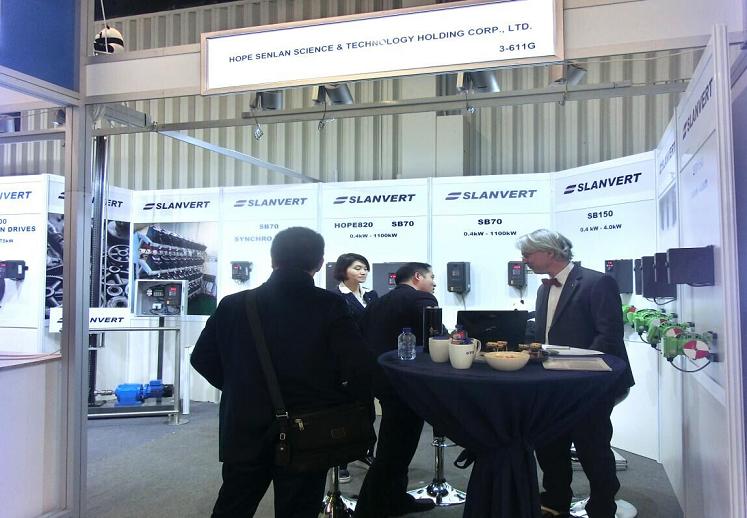 2015年11月24日~2015年11月26日,“德國(guó)紐倫堡工業(yè)自動(dòng)化展”在德國(guó)紐倫堡國(guó)際展覽中心順利開(kāi)展,本次展會(huì)吸引了全球電氣自動(dòng)化系統(tǒng)及元器件領(lǐng)域的知名企業(yè)參加,包括西門(mén)子、ABB、菲尼克斯等電氣巨頭。希望森蘭作為國(guó)內(nèi)專(zhuān)業(yè)的變頻器生產(chǎn)廠(chǎng)商也參加了此次展會(huì),在本次展會(huì)上,除展出常規(guī)的SB70、SB200等系列產(chǎn)品外,還首次向全球推出了希望森蘭最新系列的產(chǎn)品,包括:全新一代HOPE800系列高性能矢量控制型變頻器、SB150緊湊型低壓變頻器、高防護(hù)等級(jí)SB71系列防塵變頻器、SBH系列皮帶機(jī)專(zhuān)用高壓變頻器等。